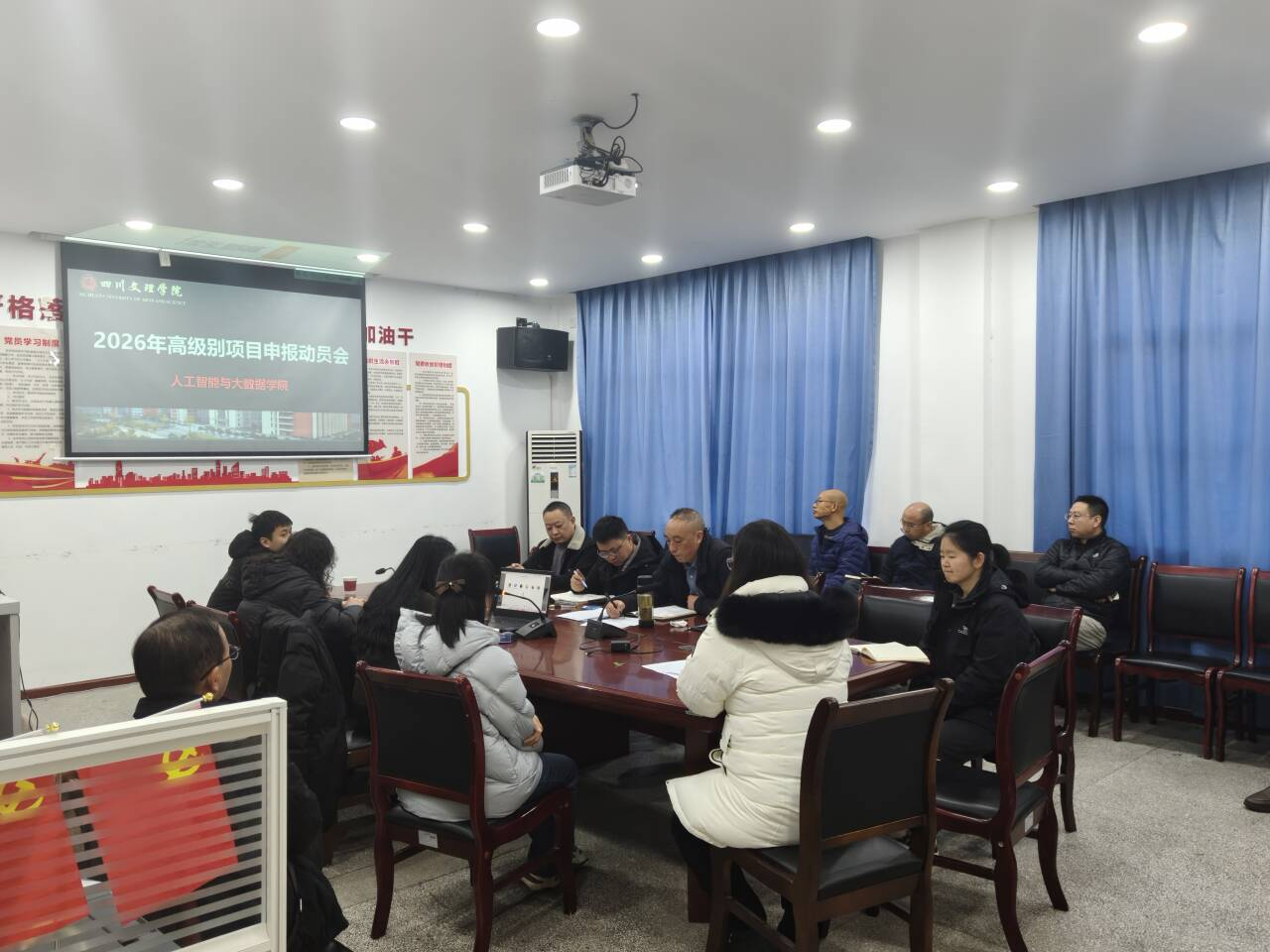 为深入学习贯彻党的二十届四中全会精神,聚力推进学校“申硕”工作,提升高级别科研项目与奖项申报质量,增强核心竞争力,学院于1月9日召开2026年高级别项目及评奖申报动员部署会。会议传达了学校相关会议精神,并就学院下一步科研工作进行部署与动员。院长杨成福主持会议,副院长彭小利总结科研工作并布置任务,学院党委书记侯翔就项目成果转化作专题辅导。