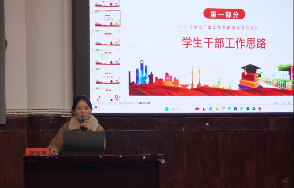 12月12日,我院学生党支部宣传委员、专职辅导员胡雪莲老师于南坝校区学术报告厅开展了2024年学院青马工程暨学生骨干培训——“学生干部工作思路流程及方法”专题培训。此次培训旨在为学生干部们明确工作方向,提升工作效率、强化专业素养,助力学生干部在服务同学、促进校园和谐与发展的过程中展现出更高的效率与专业性。