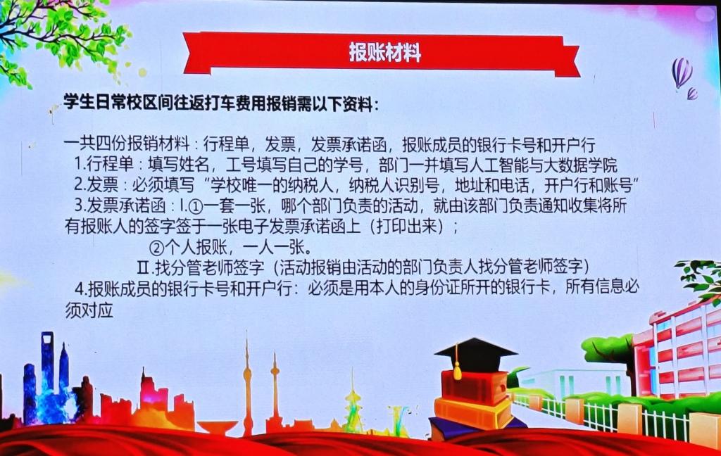 针对报账流程,胡老师进行了详尽的解析,特别关注了报账材料、报账须知以及发票抬头信息等关键环节。在报账材料方面,他着重强调了费用支付的原则:除打车费用外,其余费用均不应由学生个人支付,确保财务流程的规范性与透明度。此外,胡老师还展示了零星票据报销单的具体样式,通过实例操作,深入浅出地讲解了报账的每一步流程。这一系列的细致指导,旨在帮助大家准确理解并遵循报账规定,减少因信息错误或流程不当导致的后续麻烦。胡老师总结道:“望通过本次讲解,能让大家熟悉报账流程,避免后续出现不必要的错误与延误,从而在今后的工作中更加高效、准确地完成报账任务”