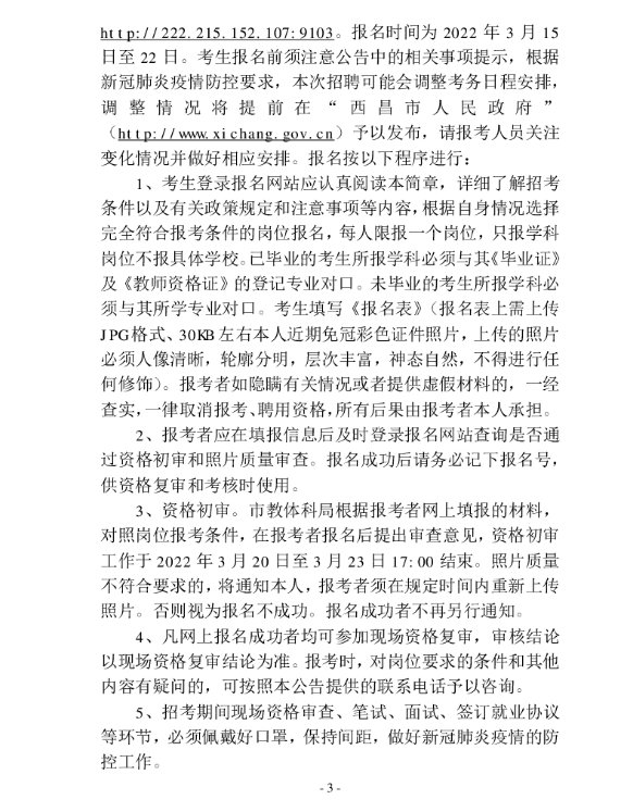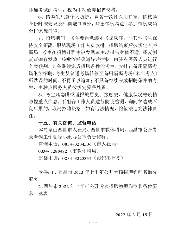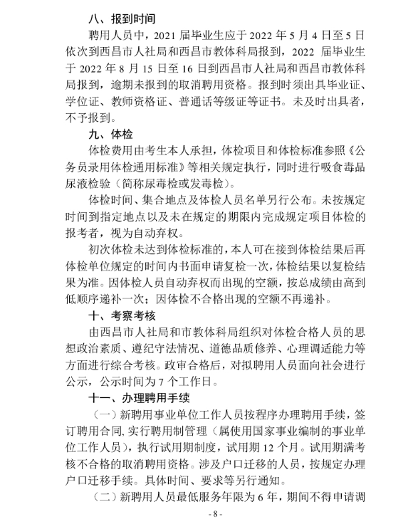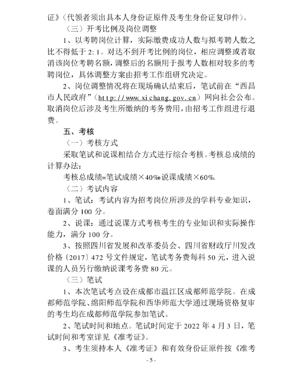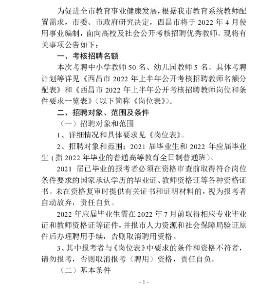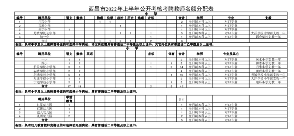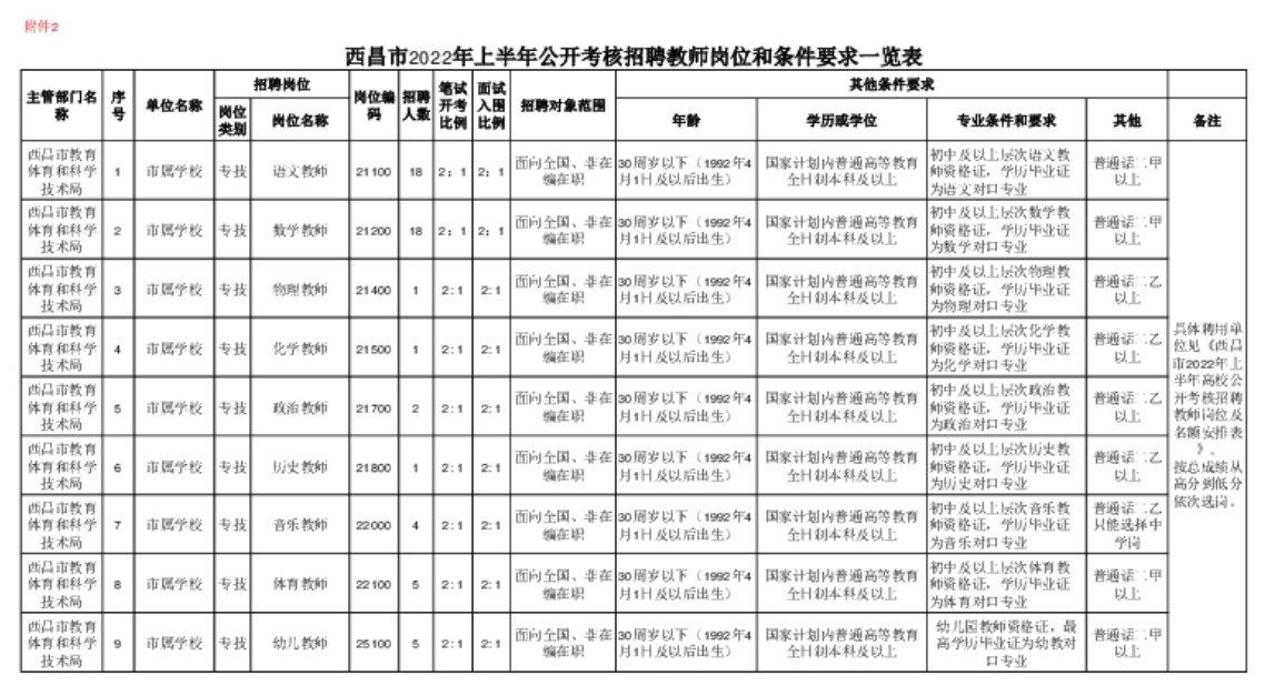 西昌市2022年上半年公开考核招聘教师公告(川文理就[2022]0284)