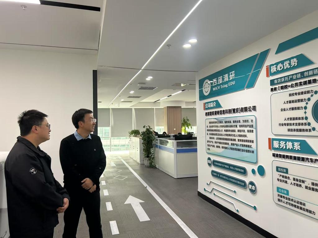 首站对接的西部智联清研信息科技(重庆)有限公司,是聚焦数字技术人才培养与产教融合服务的专业机构 —— 依托行业资源与创新模式,该公司搭建院校实训基地、构建人才培养与技术服务体系,核心业务涵盖专业课程开发、企业人才适配培训等,与学院人工智能、大数据专业高度契合。走访中,侯翔书记详细了解企业岗位需求,结合学院学子技能优势介绍培养特色,双方现场敲定大数据技能实训指导、AI 项目运维等多个实习就业岗位供给意向,并明确将定制岗位适配实训内容,助力学子衔接职场。
